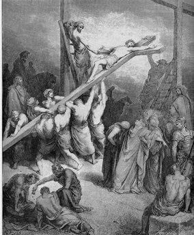|  Elevación de la Cruz Lucas 23, 33 Llegados al lugar llamado Calvario, le crucificaron allí a él y a los malhechores, uno a la derecha y otro a la izquierda.