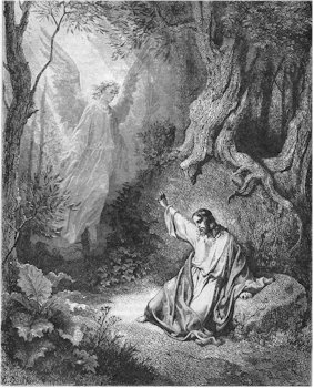 |  Jesus Consolado por Angel "Entonces, se le apareció un ángel venido del cielo que le confortaba. Y sumido en agonía, insistía más en su oración. Su sudor se hizo como gotas espesas de sangre que caían en tierra" Lc 22, 43-44
