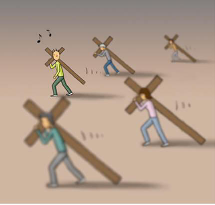 "Si alguno quiere venir en pos de Mi niéguese a si mismo, cargue con su cruz y sígame".