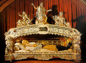 Al entrar en la Iglesia se ve sobre el altar la urna de plata que contiene los restos de San Vicente de Paul. Se puede subir por las escaleras laterales para venerarlo de cerca. Su rostro y manos están cubiertos de cera en una fiel representación de sus facciones. El cuerpo está revestido con los ornamentos sacerdotales y el crucifijo que sostiene entre sus manos es posiblemente el mismo con el que ayudó a bien morir al Rey Luis XIII.
