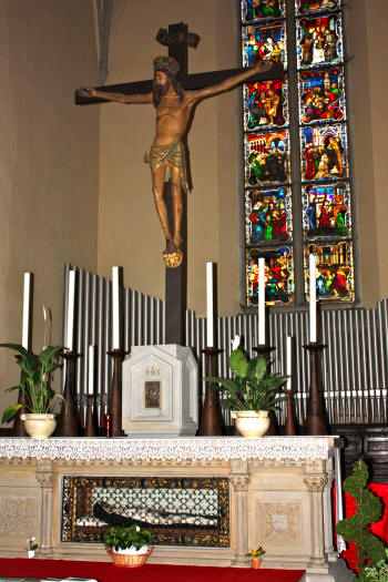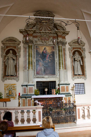 Iglesia de las Franciscanas En la iglesia del convento, bajo el altar, descansa el cuerpo incorrupto de Santa Verónica Giuliani. En nuestra visita encontramos el Santísimo expuesto. Me dió lástima ver la capilla casi vacía. Las monjitas adoraban por el otro lado de la reja. Después pedimos a las monjitas reliquias tocadas al cuerpo de la santa y alguna literatura. Desde el convento se puede caminar a la iglesia de los dominicos donde está el cuerpo tambien visible Santa Margarita di Castello.