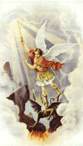 Modo de hacer la novena: Puesto de rodillas, si es posible, ante algún altar o imagen de San Miguel Arcángel, levantando el corazón a Dios, que está presente y haciéndole una profunda reverencia de espíritu y ofreciendo todas sus oraciones, palabras y pensamientos, a mayor gloria suya, honra de la Virgen María y reverencia a San Miguel Arcángel y de todos los ángeles y santos del cielo, hará la señal de la cruz; y habiéndose santiguado, dirá de corazón: "Señor mío Jesucristo, etc." DÍA PRIMERO ORACIÓN (del día)Dios y Señor de los ángeles, a quienes encomiendas la guarda de los hombres: ofrezco los merecimientos de estos soberanos espíritus y los del Príncipe de los ángeles, San Miguel, que por sí, y por medio de sus ministros, guarda la naturaleza humana, que me guardes de todo pecado, me concedas una pureza angélica y otorgues lo que pido en esta Novena, a mayor honra y gloria vuestra. Aquí rezará nueve veces el Padre Nuestro y Ave María, en honra de los nueve coros de los Ángeles, y de su príncipe San Miguel; después la oración siguiente. ORACIÓN Gloriosísimo Príncipe de la Corte del Cielo. Excelentísimo Arcángel San Miguel, gran primer Ministro de Dios, amigo de Jesucristo, y muy favorecido de su Santísima Madre, defensor de la Iglesia y abogado de los hombres: pues tanto favorecéis a vuestros devotos, haced que yo os sepa amar y servir, y alcanzadme del Señor lo que deseo y pido en esta Novena, a mayor honra y gloria suya y provecho de mi alma. Aquí, con la mayor confianza y devoción que se pudiere, pedirá cada uno al santo Arcángel la gracia o favor que desee alcanzar en la novena. ORACIÓNOmnipotente y sempiterno Dios; que por Tu suma clemencia nombraste, para la salud de los hombres, al gloriosísimo San Miguel Arcángel Príncipe de tu Iglesia concédenos, que por su intercesión y eficaz auxilio merezcamos ahora ser defendidos de todos nuestros enemigos, en la hora de nuestra muerte seamos libres, y presentados benignamente ante el trono de tu Majestad excelsa. Amén. DÍA SEGUNDO Este día, como todos los demás siguientes de la Novena, se ha de hacer y decir lo mismo que en el primero, variando sólo la oración del coro angélico, que le corresponde a cada día.Dios y Señor de los Arcángeles, a quien encomiendas los negocios gravísimos de vuestra gloria; por tales merecimientos gravísimos de vuestra gloria: ofrezco los merecimientos de estos nobilísimos espíritus y los de San Miguel Arcángel, que defendió vuestra honra y gloria contra Lucifer y sus ángeles, para que yo busque en todas las cosas vuestra mayor honra y gloria y me des lo que pido en esta novena. Amen. DÍA TERCERO Dios y Señor de los Principados a quienes encomendáis la guarda de los reinos, ofrezco los merecimientos de estos excelentísimos espíritus y los del príncipe de la Milicia Celestial, San Miguel, guarda mayor de todos los reinos cristianos, para que guardes mis sentimientos y potencias de todo desorden y desobediencia a vuestras leyes divinas y me concedas lo que pido en esta novena, a mayor honra y gloria. Amén. DÍA CUARTO Dios y Señor de las Potestades, quienes tienen especial poder para refrenar los demonios; ofrezco los merecimientos de estos poderosísimos espíritus y los de vuestro siervo, San Miguel Arcángel, que alcanzó sobre los demonios la mayor victoria y con la misma facilidad pelea continuamente contra ellos, en favor de los hombres, para que me defiendes de todas las tentaciones del mundo, del demonio y de la carne y me des lo que pido en esta novena, a mayor honra y gloria vuestra. Amén. DÍA QUINTO Dios y Señor de las Virtudes, por las cuales haces milagros propios de vuestro soberano poder, gobernando la naturaleza, para que os sirva a vuestra gloria: ofrezco los merecimientos de estos prodigiosos espíritus y los de San Miguel, principal instrumento de todas las maravillas que se hacen en el mundo, para que me concedas, que vencidas las malas inclinaciones de mi corrompida naturaleza, conserve y aumente vuestra gracia y consiga lo que pido en esta novena, a mayor honra y gloria vuestra. Amén. DÍA SEXTO Dios y Señor de las Dominaciones, las que presiden a los coros inferiores y son ministros de vuestra providencia, os ofrezco los merecimientos de estos eminentísimos espíritus y los de vuestro primer ministro San Miguel, para que me concedas perfecto señorío sobre mis pasiones y perfecta obediencia a todos mis superiores y la gracia que pido en esta novena, a mayor honra y gloria vuestra. Amén. DÍA SÉPTIMO Dios y Señor de los Tronos, en quienes descansas, como en el trono de vuestra gloria y os sientas como en tribunal de justicia: ofrezco los merecimientos de estos altísimos espíritus y los de San Miguel Arcángel, trono de vuestra grandeza y ministro supremo de justicia, para que concedas, que yo me juzgue a mí mismo con rigor, para ser después juzgado con piedad y consiga lo que pido en esta novena, a mayor honra y gloria vuestra. Amén. DÍA OCTAVO Dios y Señor de los Querubines que están adornados de perfectísimas sabidurías: ofrezco los merecimientos de estos sapientísimos espíritus y los de San Miguel, príncipe de los sabios del cielo, por quien enseñas a vuestra Iglesia las verdades que necesita saber para que me enseñe a temerte y amarte, que es la mayor sabiduría y que me concedas lo que pido en esta novena, a mayor honra y gloria vuestra. Amén. DÍA NOVENO Dios y Señor de los Serafines que se abrazan a vuestro amor: ofrezco los merecimientos de estos ardentísimos espíritus y los de vuestro amado y amante San Miguel, para que yo os ame, único Dios y Señor mío, sobre todas las cosas, con toda el alma, con todo el corazón y con todas las fuerzas; y para que me concedas lo que pido en esta novena, a mayor honra y gloria vuestra. Amén. ORACIÓN ¡Oh soberano Arcángel! ¡Oh excelente príncipe de la corte del cielo! ¡Quién no os será muy devoto desde hoy, si así favorecéis a vu