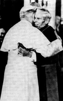 -El 3 de Octubre de 1979 fue un momento muy especial para Mons. Sheen. El Papa Juan Pablo II lo abrazó en la Catedral de San Patricio, Nueva York, y le dijo: “¡Has escrito y hablado bien de nuestro Señor Jesucristo. Eres un hijo leal de la Iglesia!". Tres meses mas tarde, el 9 de diciembre, el Señor se llevó al buen obispo al cielo.