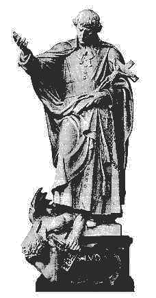 Sobre la tumba de San Luis de Monfort dice: JUAN PABLO II Con ocasión del 50 aniversario de su canonización, que tuvo lugar el 20 de julio de 1947. El Santo Padre ha escrito a los superiores de las comunidades fundadas por el santo (La Compañía de María, los Hermanos de la Instrucción Cristiana de San Gabriel y las Hijas de la Sabiduría). El Papa escribe sobre la dedicación total del santo a Dios, a Jesucristo, su Hijo Encarnado, y a María, la Madre de Dios. Dice que "San Louis-Marie tomó como lema estas sencillas palabras: 'Dios solo'. (...) En él, el amor por Dios fue total. (...) Fue, con todo su ser, testigo de la caridad teologal". El Santo Padre también destaca el amor de Montfort por la Cruz, "de la que hizo el mayor signo de sus misiones. (...) Día a día, practicó la imitación de Cristo en lo que llamó el loco amor de la Cruz, en la que ve 'el triunfo de la eterna Sabiduría'". "Para conocer la sabiduría eterna, increada y encarnada -subraya el Papa- Grignion de Montfort invitó constantemente a confiar en la Santísima Virgen María, tan inseparable de Jesús que 'uno podría separar antes la luz del sol'. (...) Sería bueno redescubrir el fervor y el justo tono de Montfort para dar a la Virgen su verdadero lugar y para aprender a rezarle". Juan Pablo II anima a la familia de religiosos de Montfort a permanecer fieles a "los principios de la espiritualidad de San Louis-Marie. (...) Haced uso de este tesoro que no debe permanecer oculto". Para terminar, escribe: "Cuando se impone la necesidad de una nueva evangelización en la mayor parte de las regiones del mundo, el celo del Padre Montfort por la Palabra de Dios, su solicitud por los más pobres, su capacidad de hacerse entender por los más sencillos y de estimular la piedad, sus cualidades de organizador, sus iniciativas para prolongar el fervor mediante la fundación de movimientos espirituales y para comprometer a los laicos en el servicio de los pobres, todo ello, con las adaptaciones necesarias, puede inspirar a los apóstoles de hoy". Foto superior: Estatua en la Basílica de San Pedro, Vaticano.