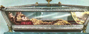 | Juan Vianney, San (con baño de cera) El 4 de Agosto de 1859, cuando una tormenta azotaba el pueblo de Ars, el Obispo M. Monnin leía estas palabras: "Que los santos ángeles de Dios vengan a su encuentro y lo conduzcan a la Jerusalén celestial", el Cura de Ars encomendó su alma a Dios. Su cuerpo permanece incorrupto en la Iglesia de Ars, Francia. Mas >>>