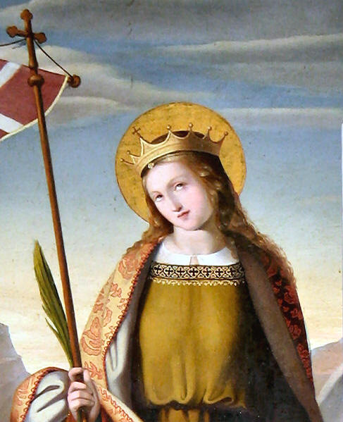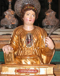En un viaje a la isla de Gozo, Malta (centro del Mediterraneo), descubrí que esta santa es allí muy venerada y sus reliquias están en la catedral (foto).